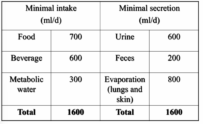 Minimal intake (ml/d) = minimal secretion (ml/d)