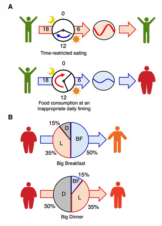 keeping energy intake constant (large breakfast vs small dinner)
