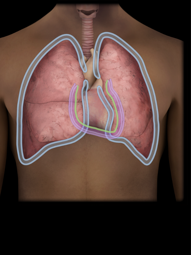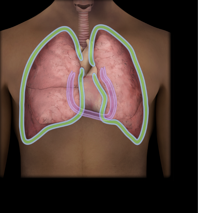 Bilateral potential spaces between parietal and visceral layers of pleura