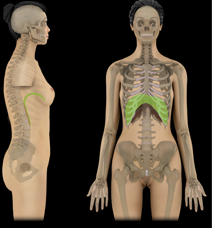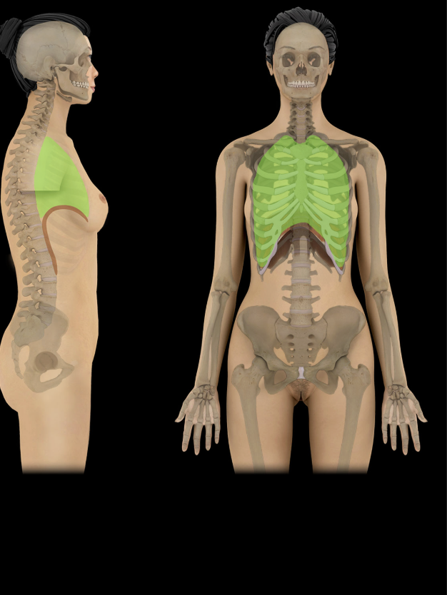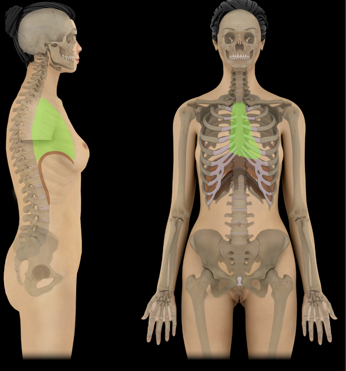 Bounded by sternum, ribs and costal cartilages, intercostal muscles, thoracic vertebrae, and diaphragm