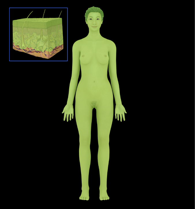 Toward the surface of the body or organ (e.g., Skin is superficial to muscles)