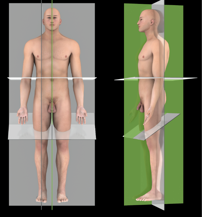 A vertical plane that passes parallel to the long axis of the body, dividing it into right and left portions