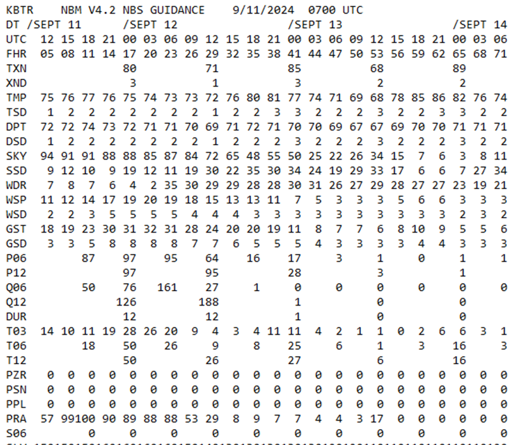 NBM forecasts are typically shown in a…