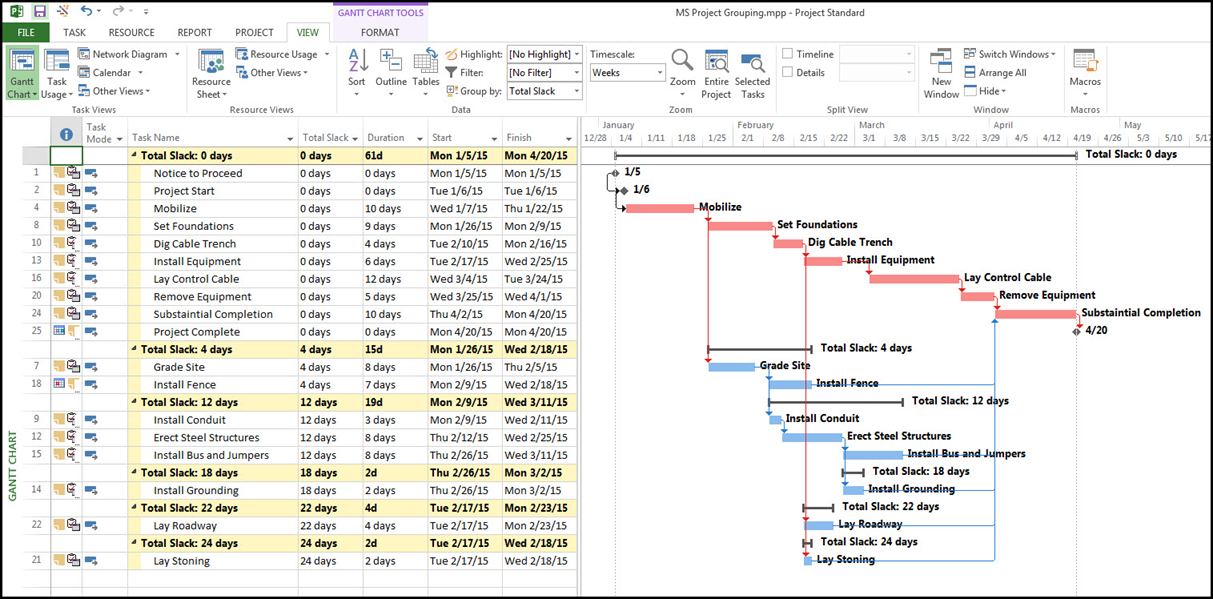 Indicates which activities are non-critical and how long they can be delayed without delaying the entire project (slack).