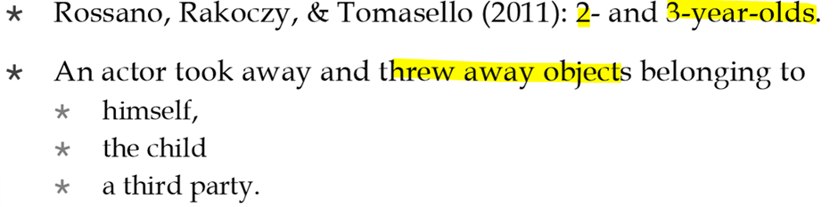 both protested frequently when their own object was involved but only 3 year olds stood up for the third party