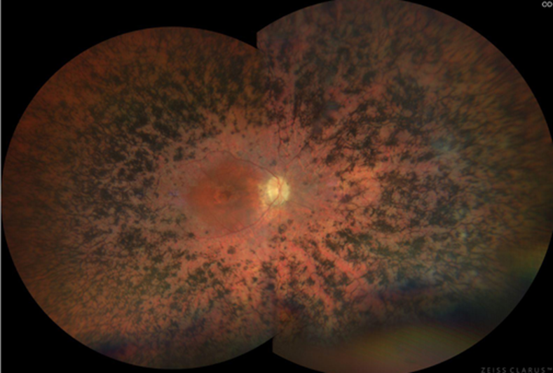 I see retinitis pigmentosa (bone spicule pigmentation spread around that starts in rods and comes in towards cones/ centre