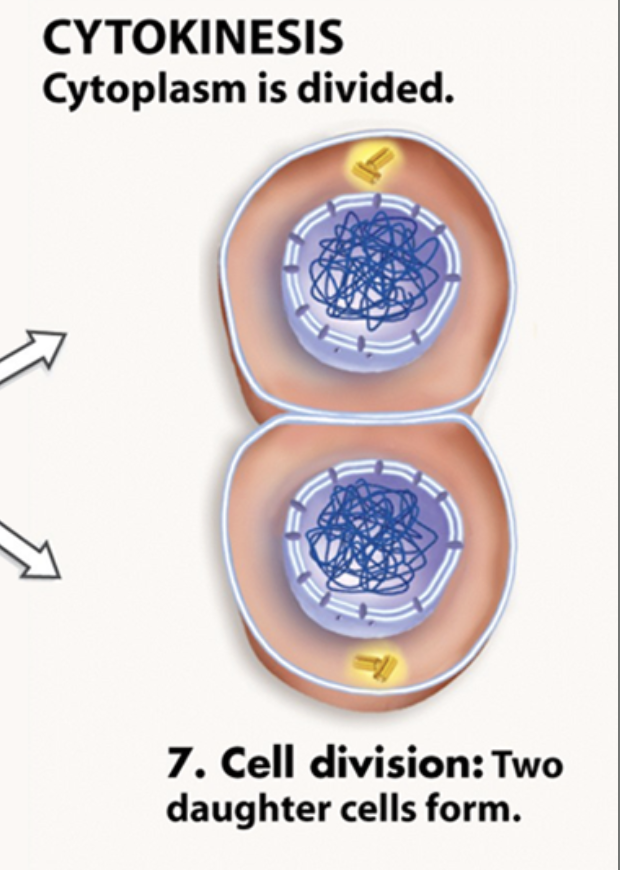 Division of the cytoplasm to produce two distinct daughter cells (Happens after mitosis)