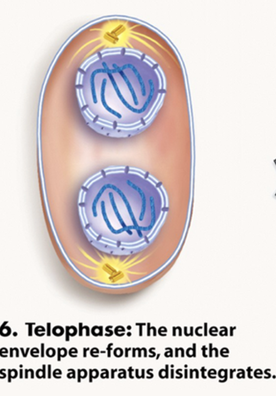 Divide one cell nucleus into two nuclei, distributing the duplicated chromosomes so that each daughter cell receives the same complement of chromosomes