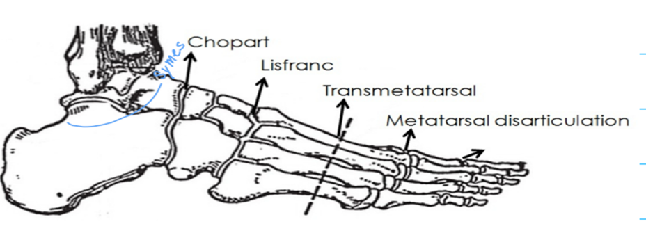 Partial foot amputation levels