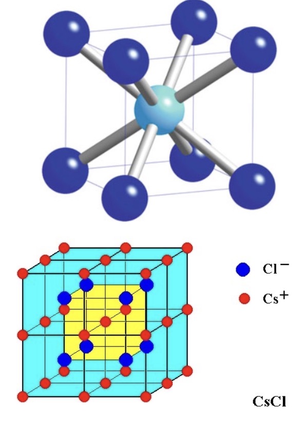 Structure: Simple cubic (sc); CN = 8 for both ions