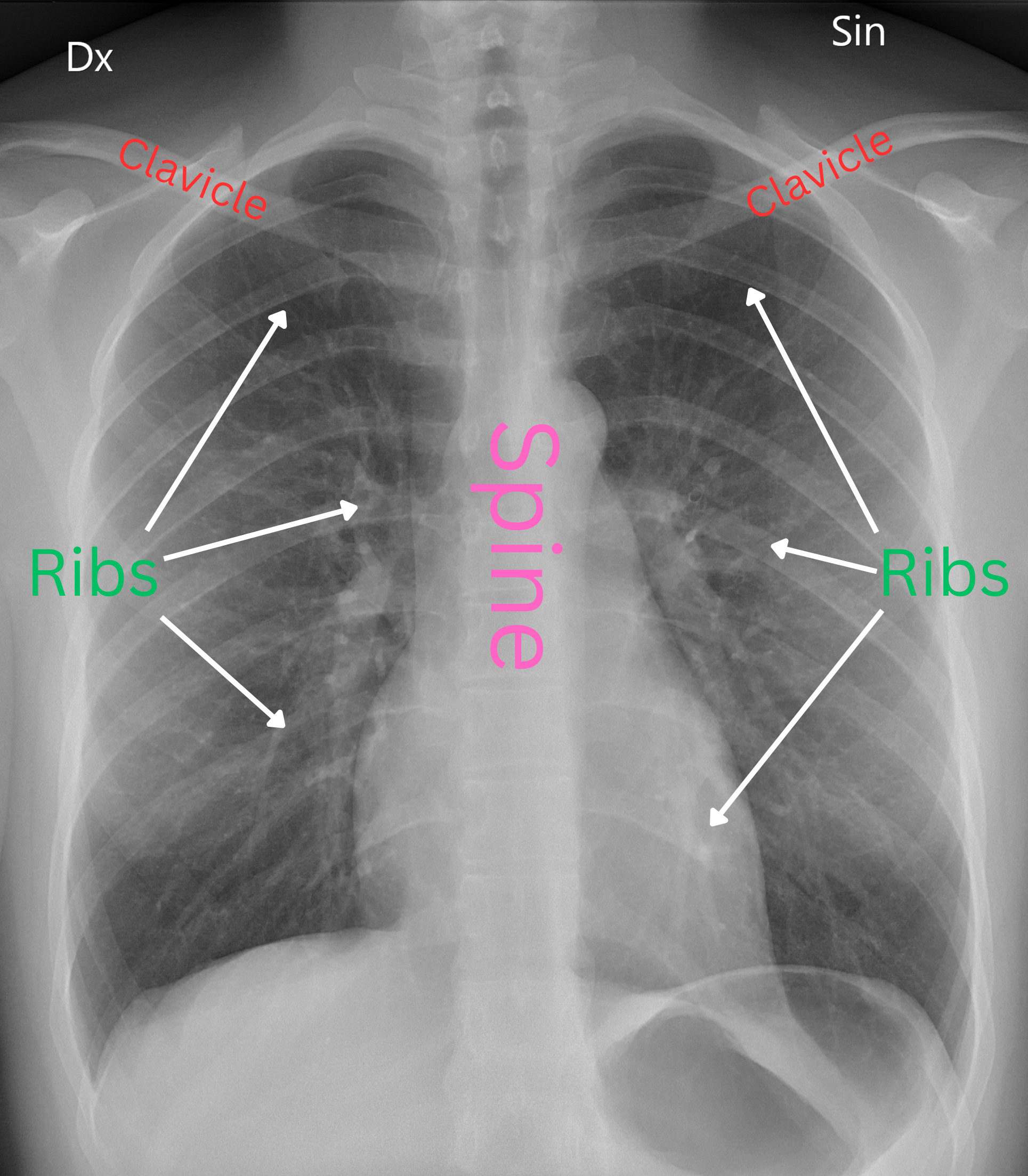 on a chest xray how to distinguish between posterior ribs and anterior