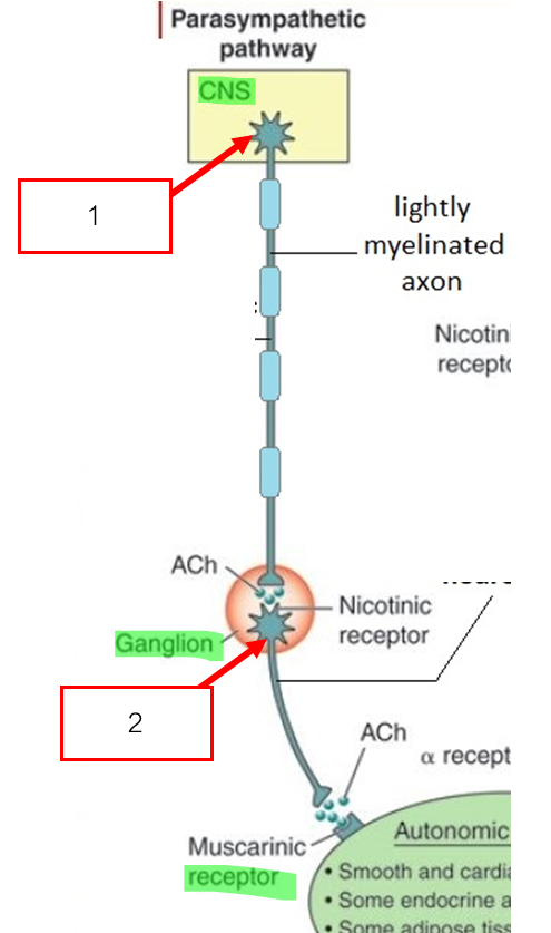 Parasympathetic : อยู่ที่ craniosacral(ฺBS. กับ Sacral)