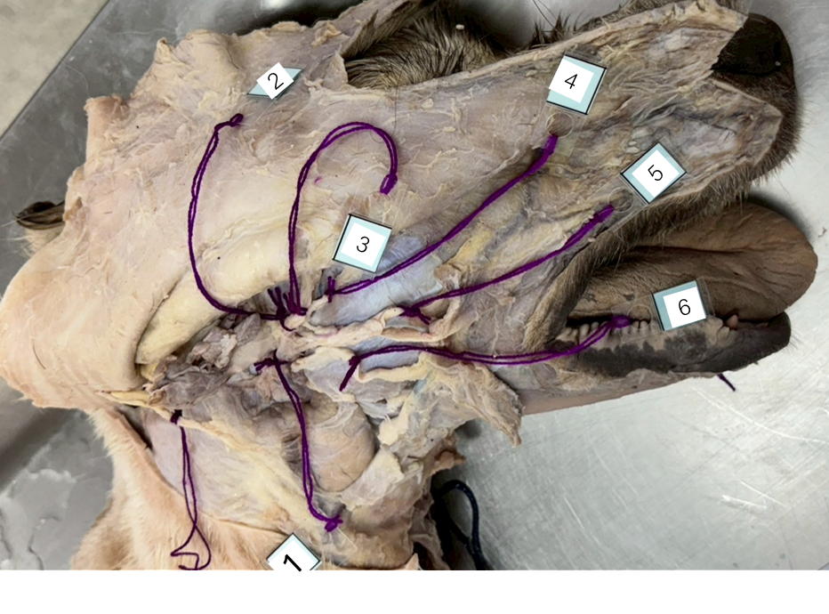 ออกจาก stylomastoid foramen → เลี้ยง กล้ามเนื้อแสดงสีหน้า