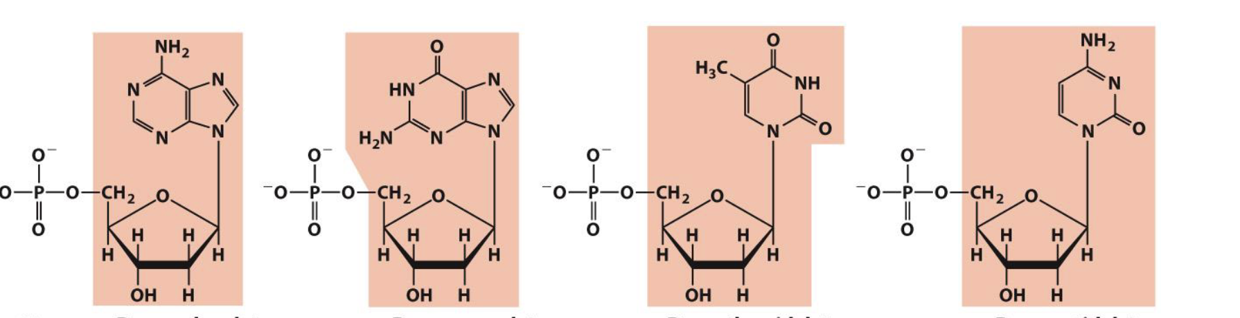 absorb UV light around 250-270 nm (because of conjugated ring system; if you hit with light ~260 nm the amount of light absorbed can be used to determine the concentration)