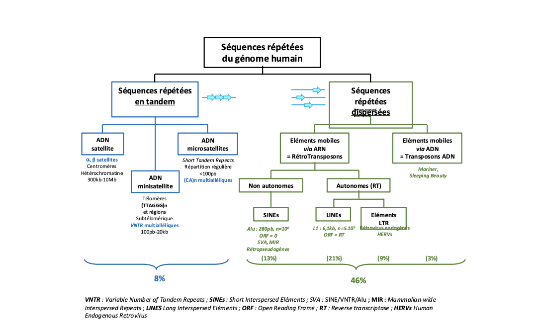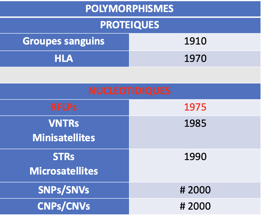 • ADN minisatellites (VNTRs = variable number tandem repeats)