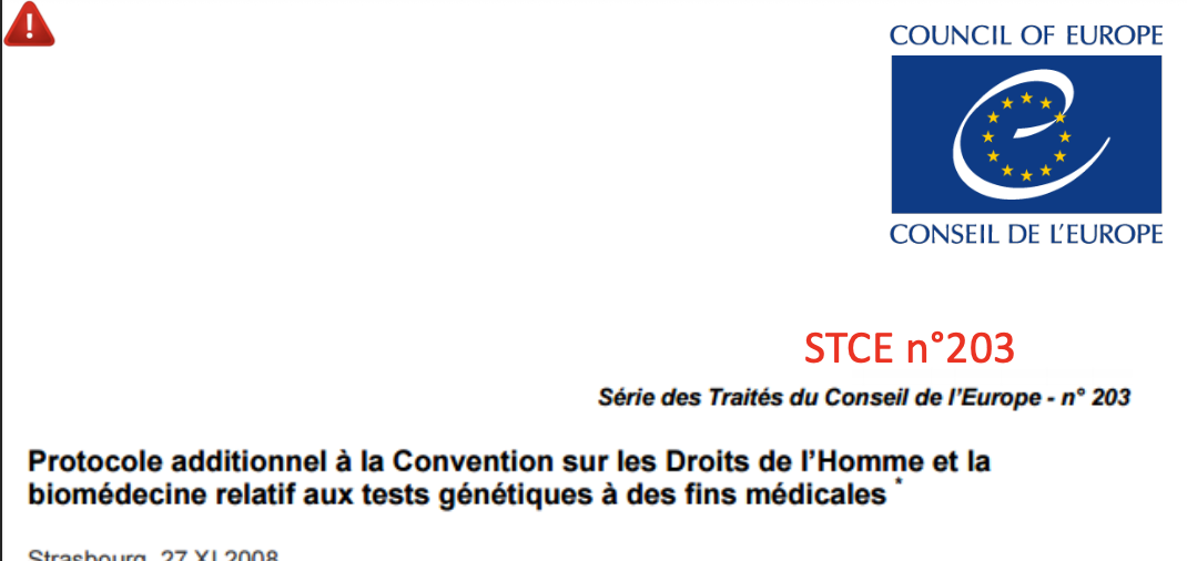 1) Encadrement réglementaire des activités de génétique en France : Convention: