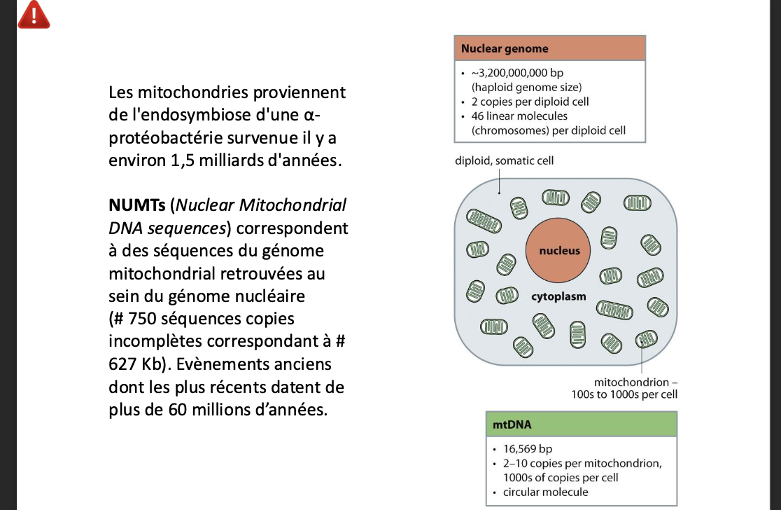 Ordre de grandeur du genome nucleaire et mitochondrial? (origine de la mitochonries?)
