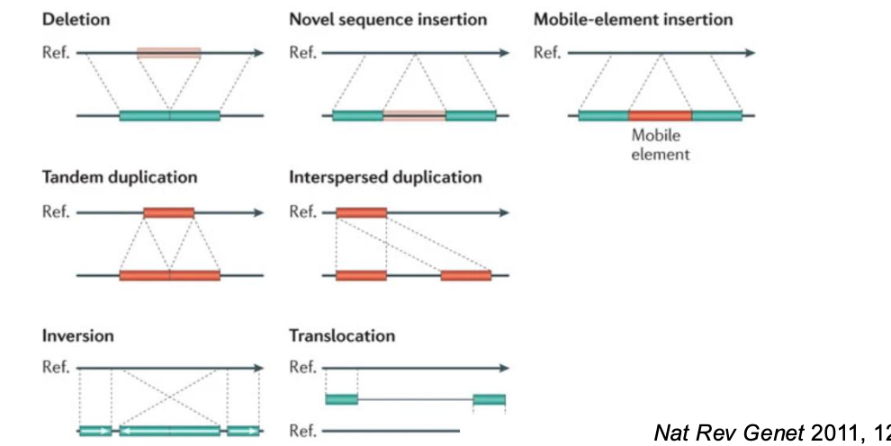 Les classes mutationnelles de SV peuvent être subdivisées en deux groupes :
