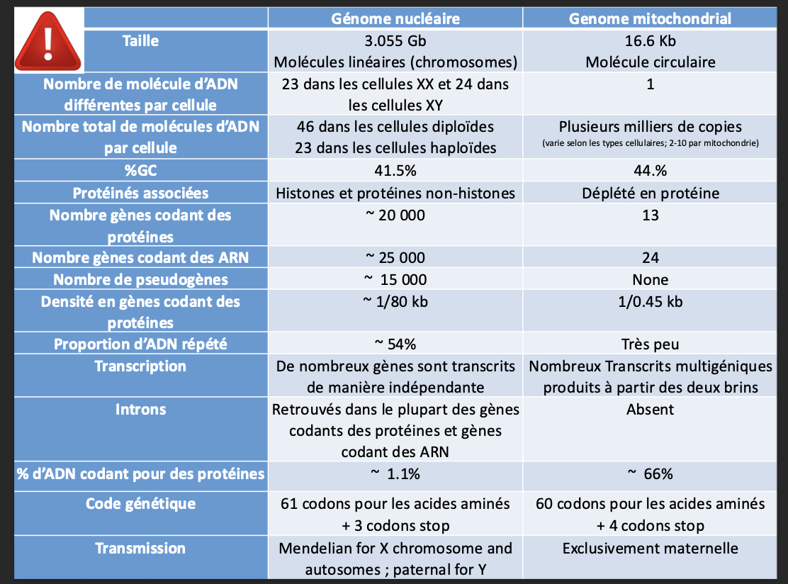 3) Présentation générale du génome humain nucléaire et du génome mitochondrial