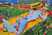 Kirchner: Reclining blue nood with straw hat