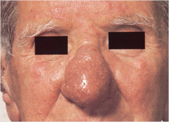 ā¢Rhinophyma (bulbous nose) in severe cases