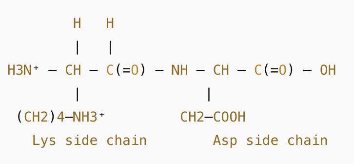 What is the net charge on the dipeptide lys-asp at a pH of 1.0?