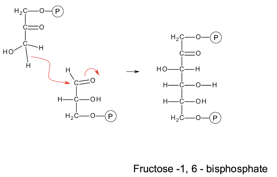 Condensation of GA3P + DHAP → F-1,6-BP (reverse of aldolase cleavage)