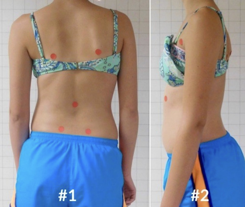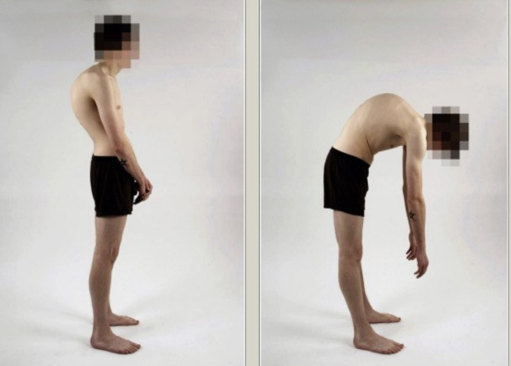 pt stands, and then slowly bends forward at the waist with arms pressed together