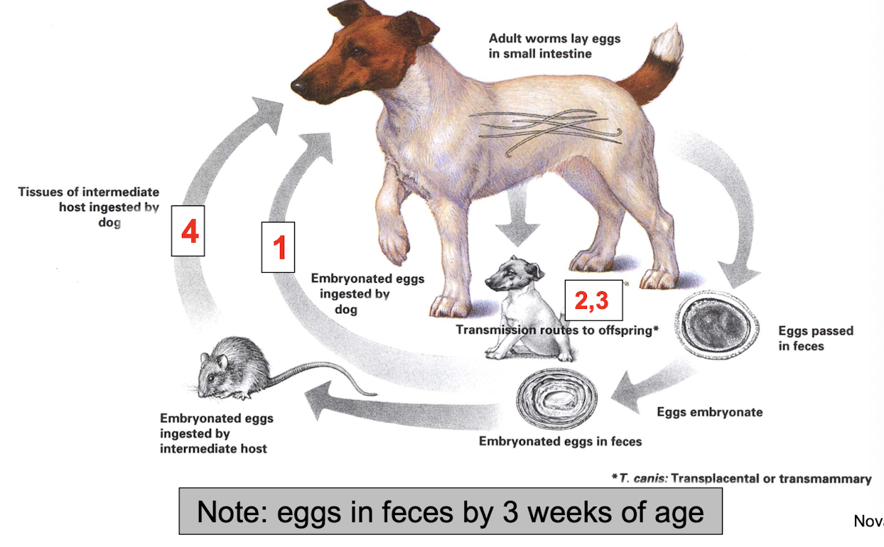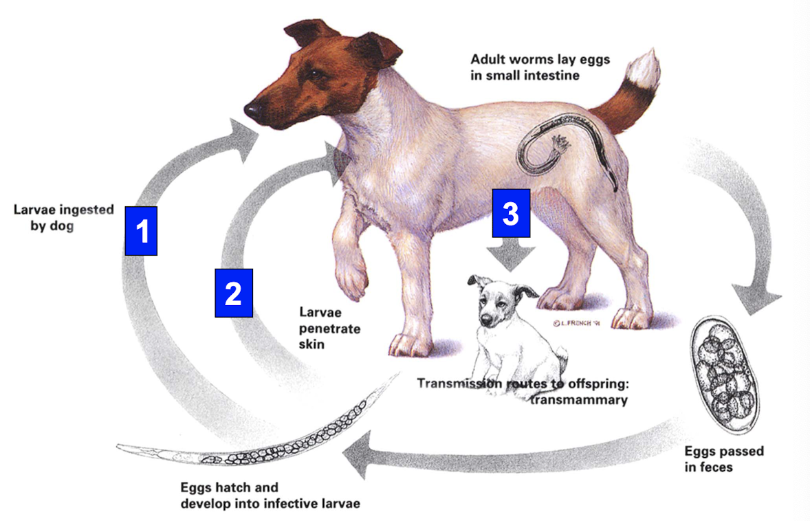 Puppies: Toxocara canis & Ancylostoma caninum.