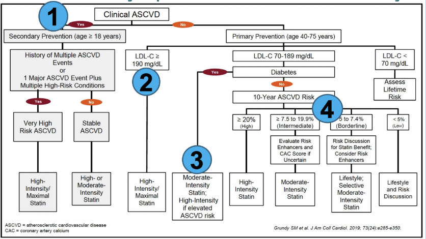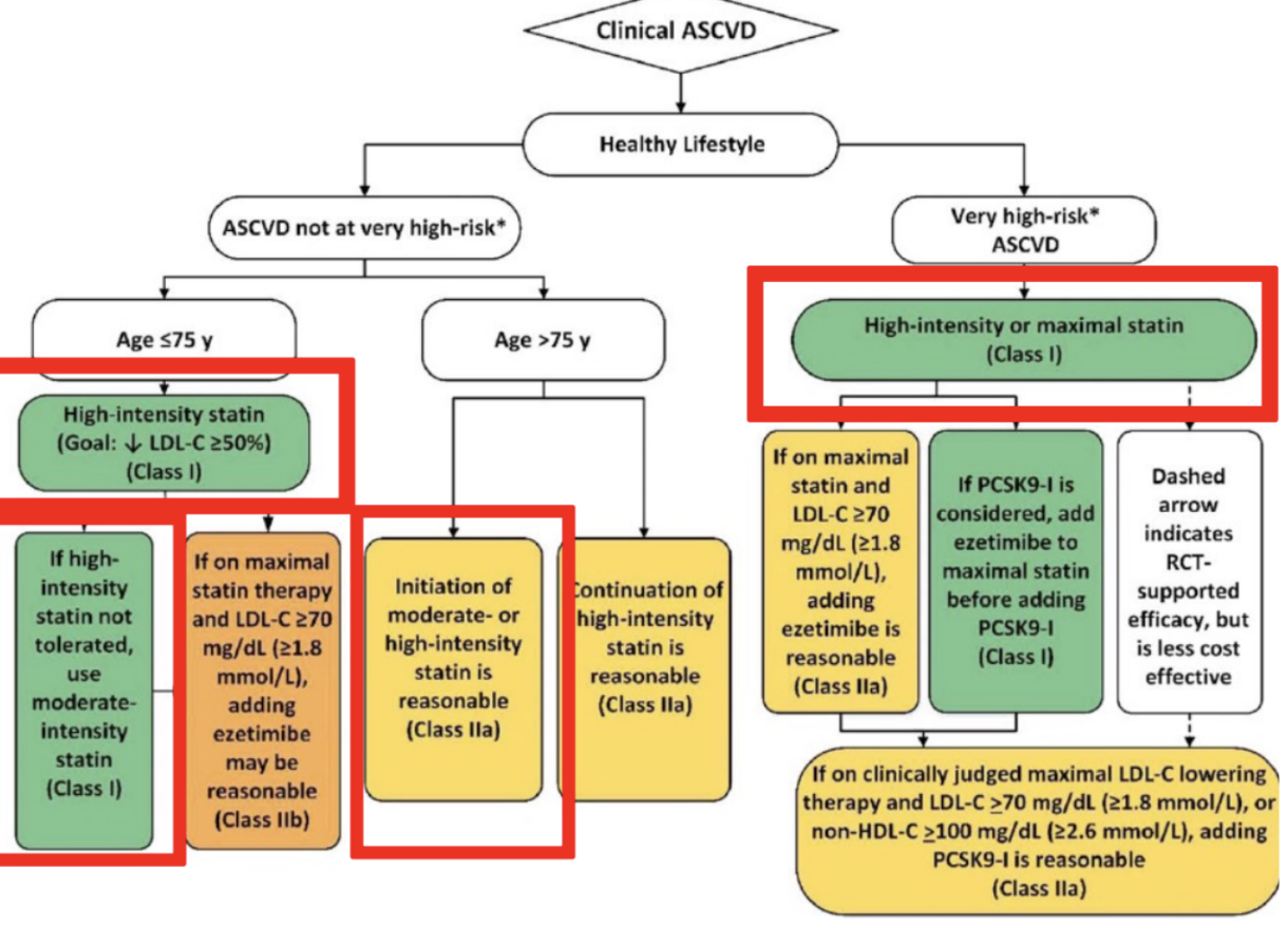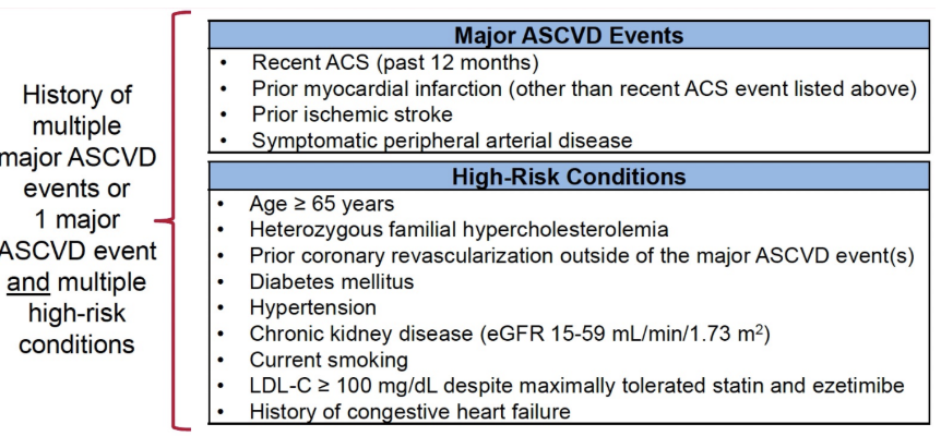 * Clinical ASCVD = ACS, history of MI, stable or unstable angina, coronary or other revascularization, stroke, TIA, PAD