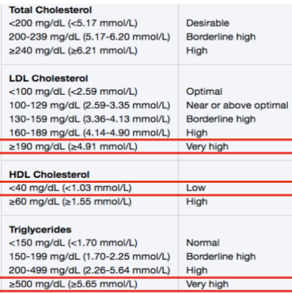 High TC, TG, or LDL