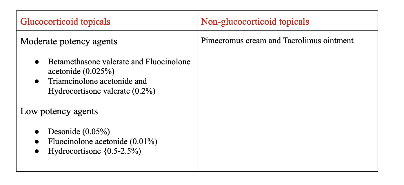 Low potency options should be used on the face in a short-term capacity only