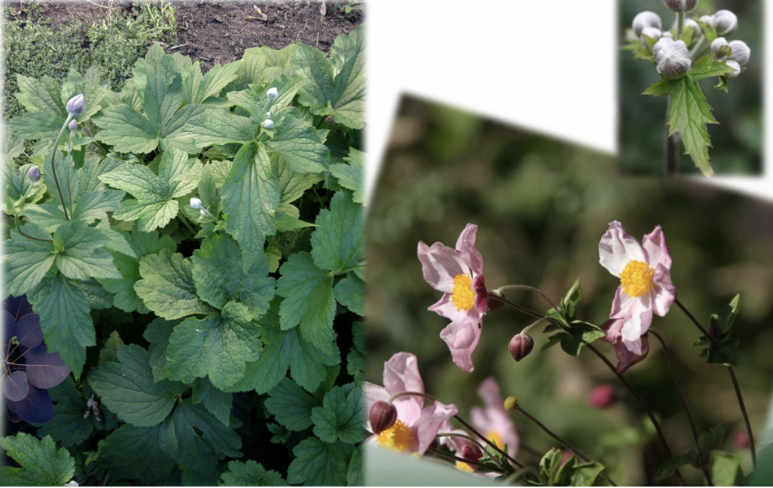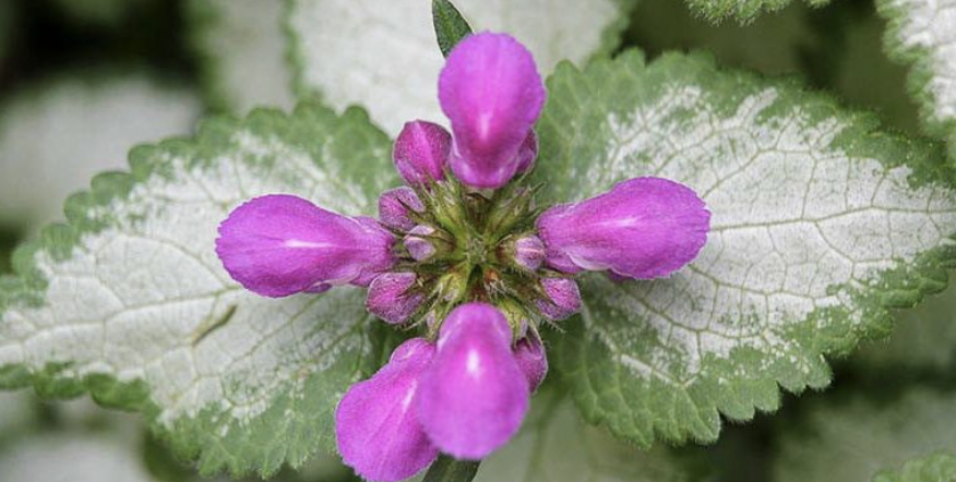 larger flower, more elliptical, leaves are more serrated with a vein color, 6 petals with a modified spur