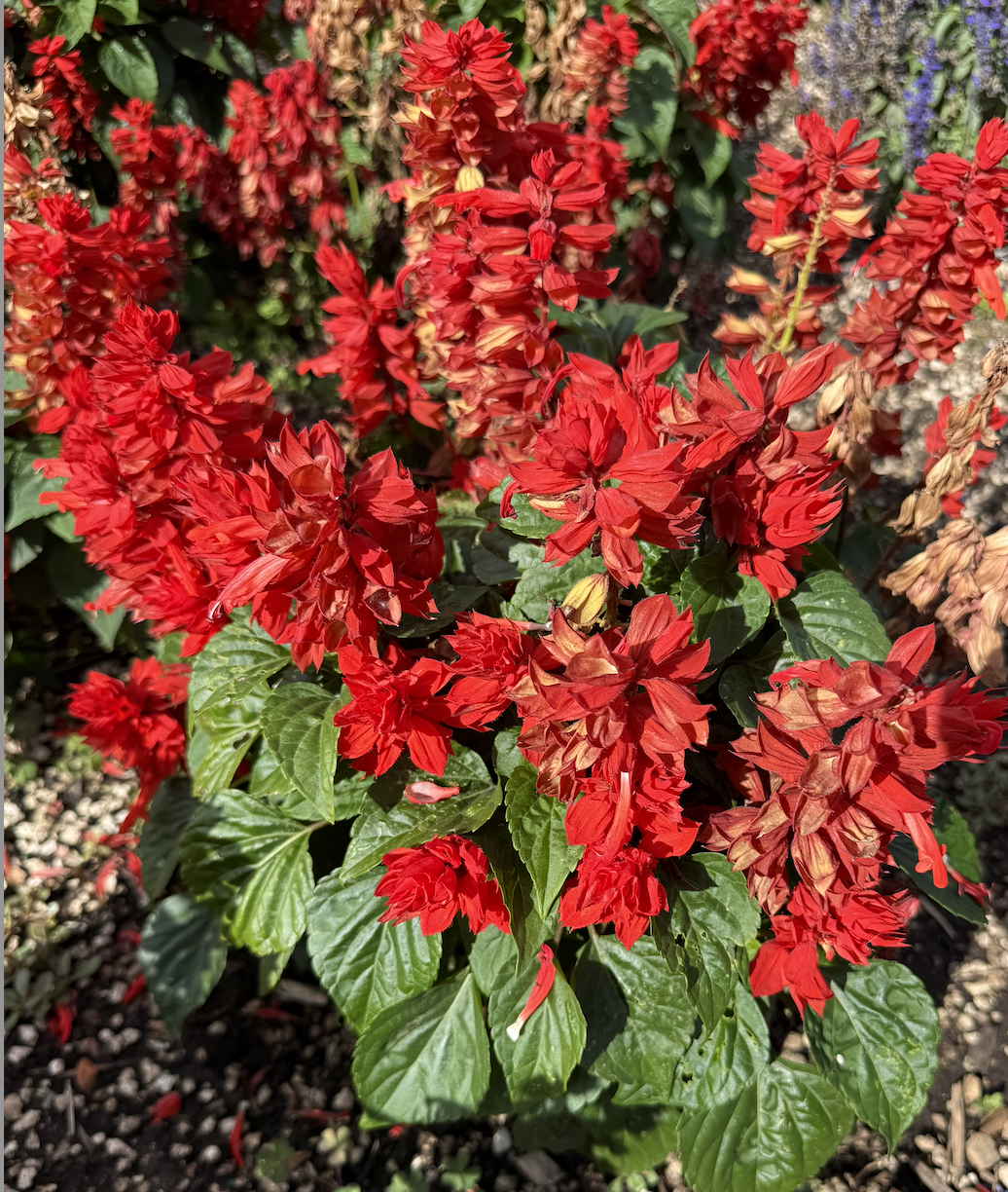 massing/ground cover/containers, umbel shaped spike, opposite / serrated leaves