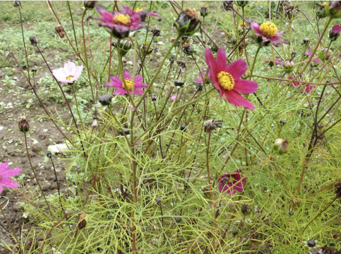 taller, head made of ray florets and disk florets, distinct smell, almost compound leaf