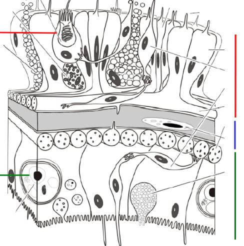 Red = epidermis