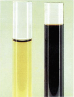 oxidized porphyrins are dark wine-red colored and fluoresce under UV light