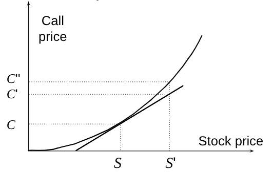 Gamma Addresses Delta Hedging Errors Caused By Curvature (Figure 19.7)