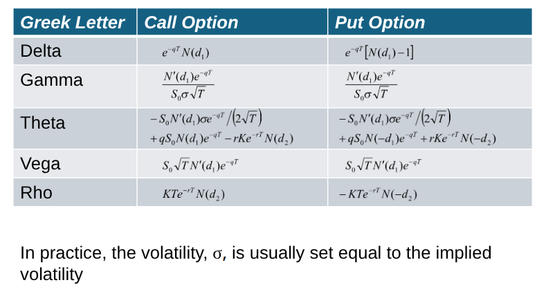 Greek Letters for European Options on an Asset that Provides a Yield at Rate q (Table 19.6)