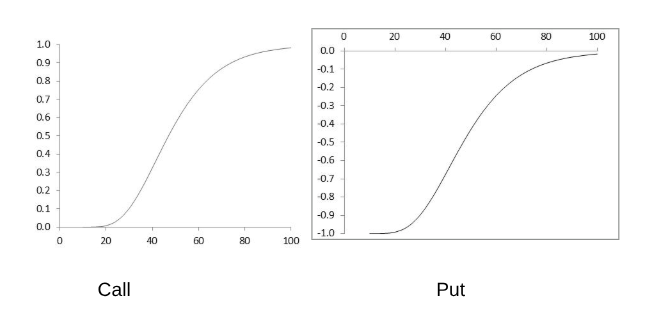 Delta (Δ) is the rate of change of the option price with respect to the underlying asset price