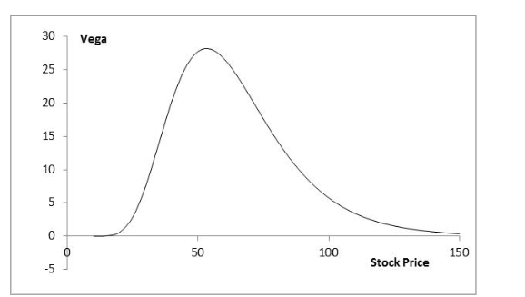 Vega for Call or Put Option (K=50, σ = 25%, r = 0, T = 2, Figure 19.11))