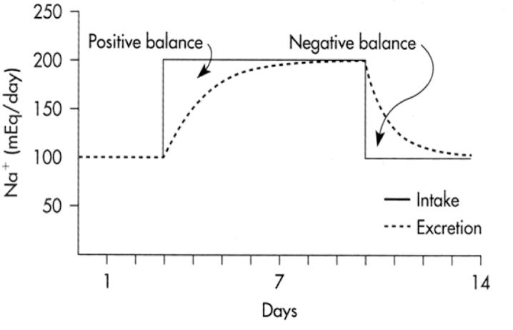 changes in Na+ excretion which cause changes in H2O excretion (because H2O follows Na+)