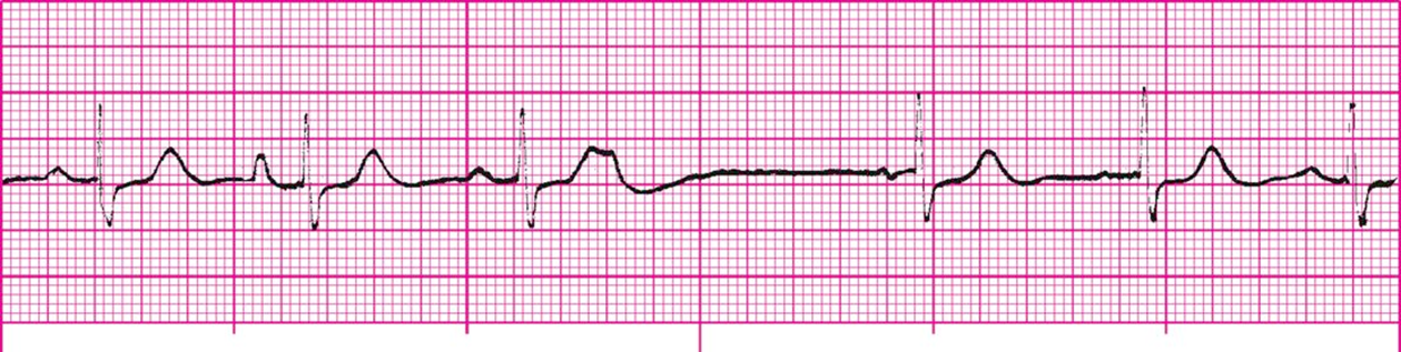 electrical impulse for one or more beats, results in absent PQRST complexes
