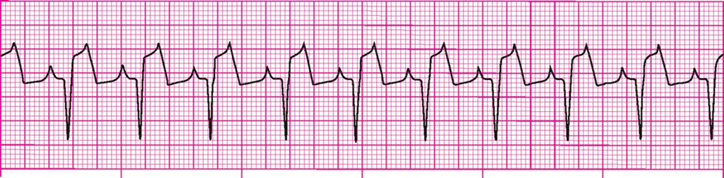 • Positive (upright) P waves (in lead II) that differ in shape from sinus P waves
