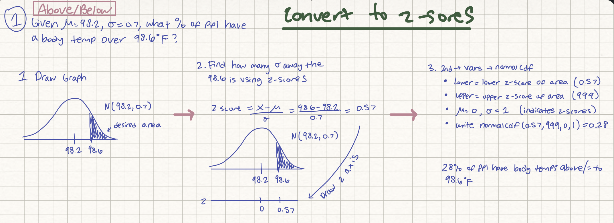 P(x < 1) means what is the % probability that x is less than 1 (use normalcdf)