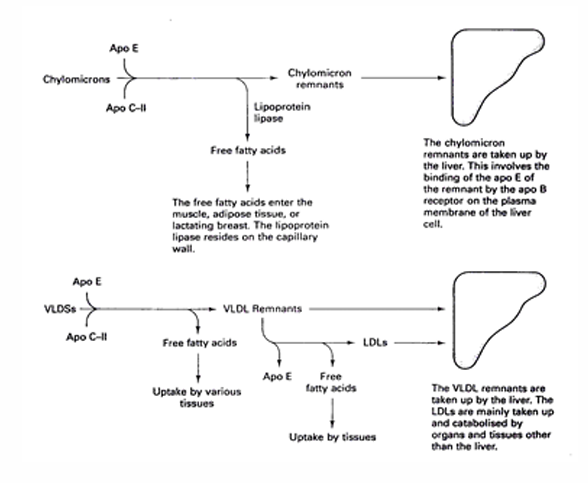 Apo E and Apo B mediate the uptake of CM and VLDL remnants by the liver