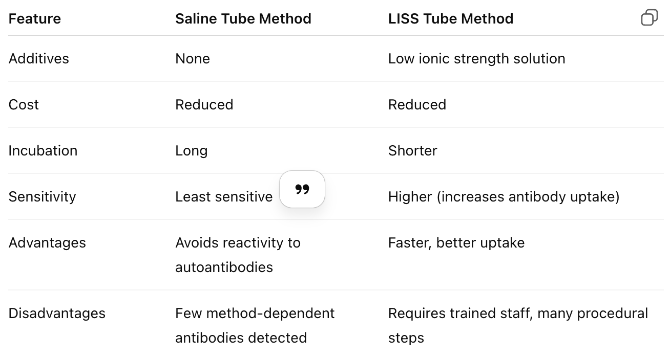 Albumin: Enhances RBC sensitization differently, can detect antibodies that LISS may miss.
