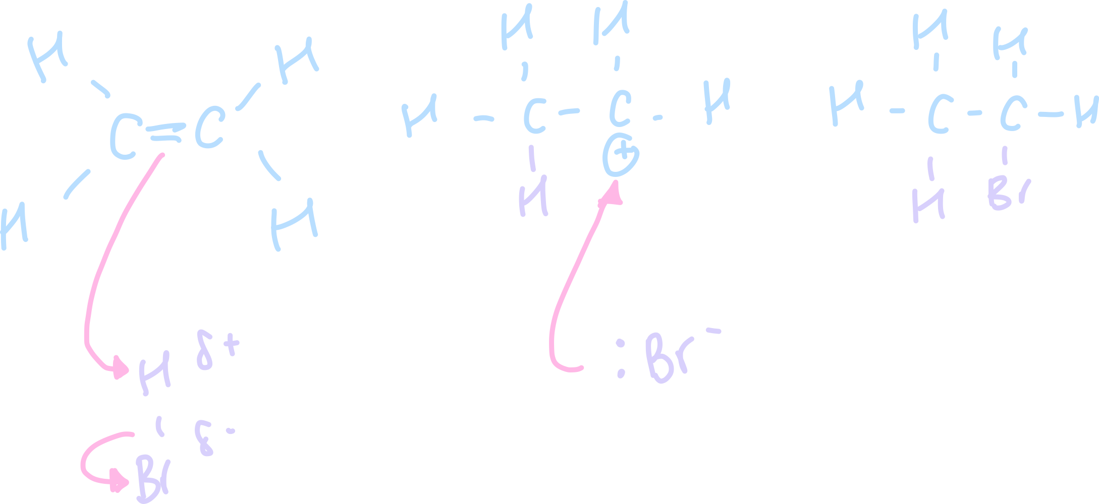 Draw the electrophilic addition mechanism for ethene an hydrogen bromide