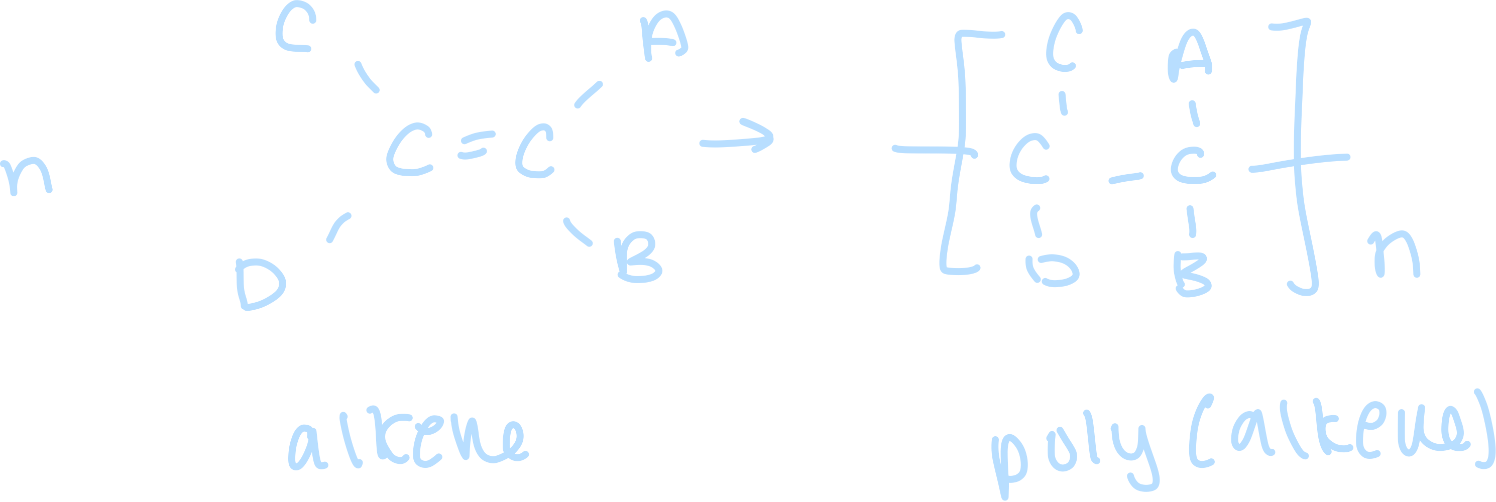 Draw the general equation for the formation of a polymer from alkene monomers