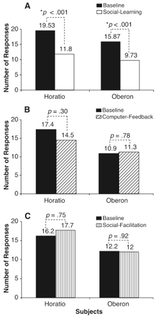 The effect was robust across multiple trials, confirming that monkeys can engage in rule-based observational learning.